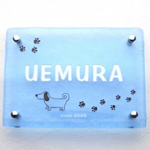 【創業8周年記念】【ハロウィンセール】【送料無料&今だけ20%OFF!】手作りガラス表札長方形R245ブルー”Withワン”(2色目込み価格)ひょうさつ【フェスティバルライフ1029×2】【フェスティバルライフ1101×2】