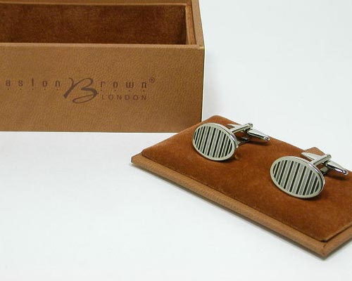 グレーと黒のストライプがシックなカフスボタン(カフリンクス)です。